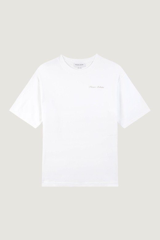Notre T-shirt Chassaigne a une coupe confortable, un décolleté côtelé et des finitions à double aiguille au bas des manches et du corps. Il est fait de tricot épais et doux, très agréable à porter. Sa broderie est la nouvelle signature de la Maison Labiche.