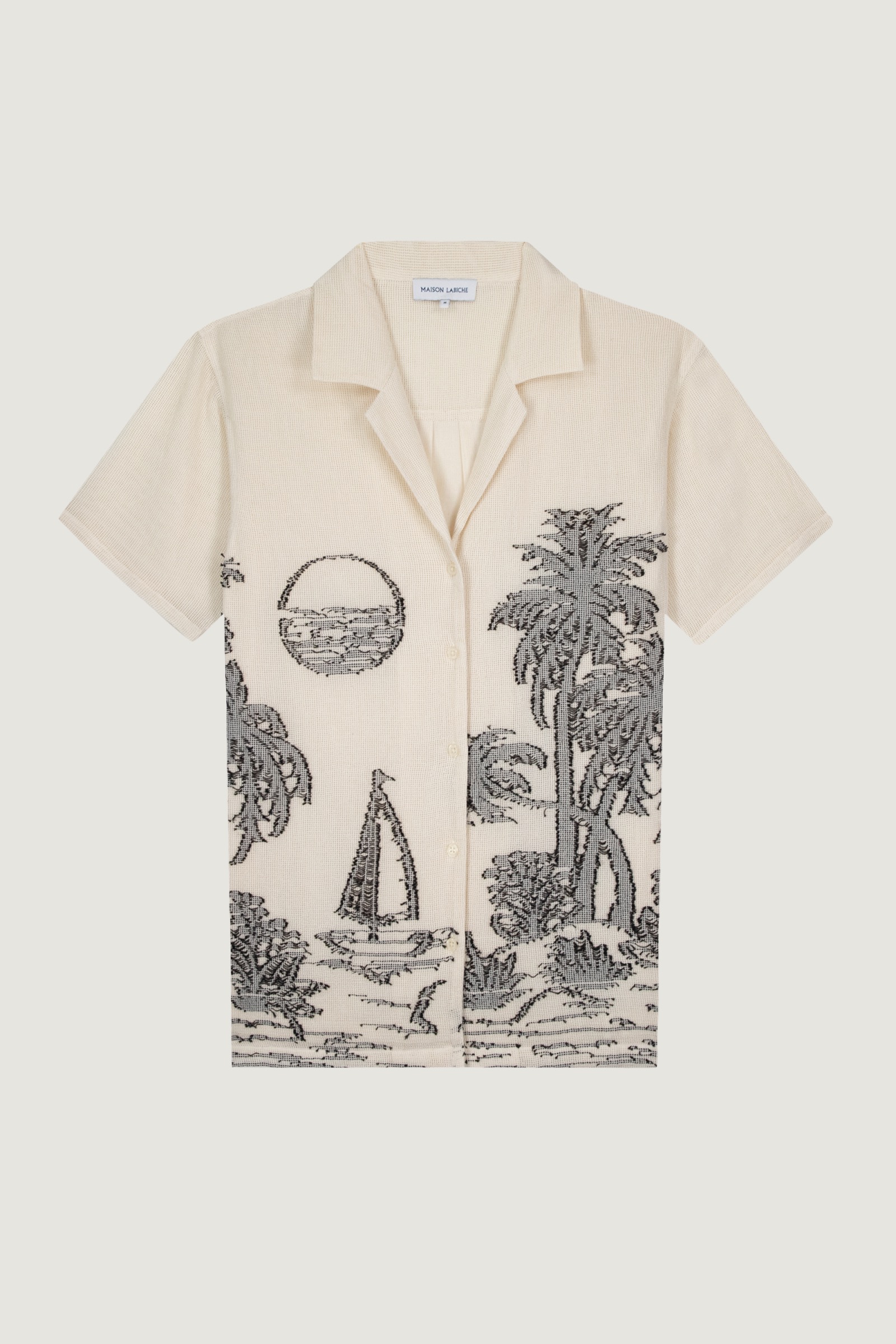 Notre chemise à manches courtes Marney a une coupe droite, un col requin et des boutons gravés Maison Labiche. Son tissage inspire l’évasion.
