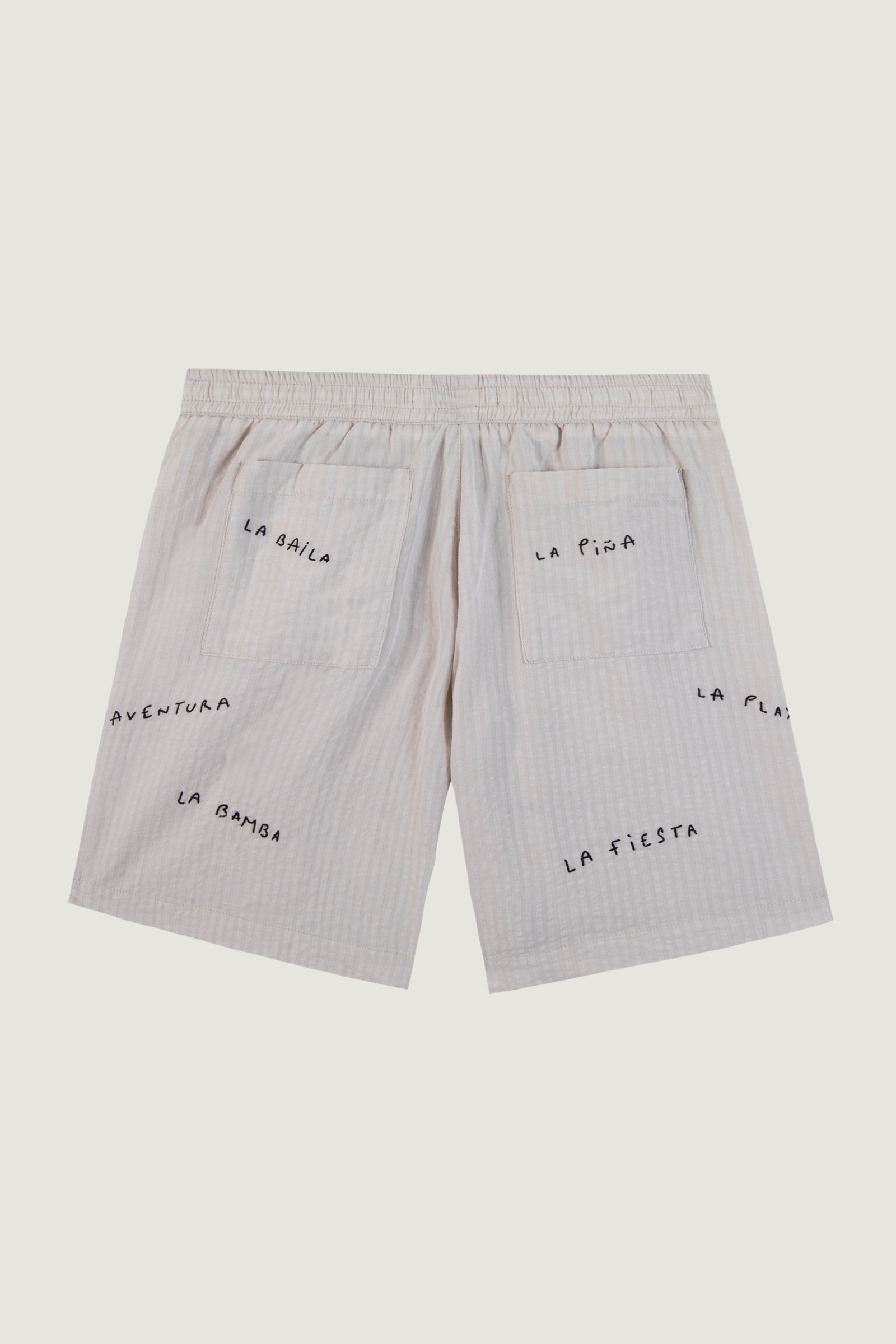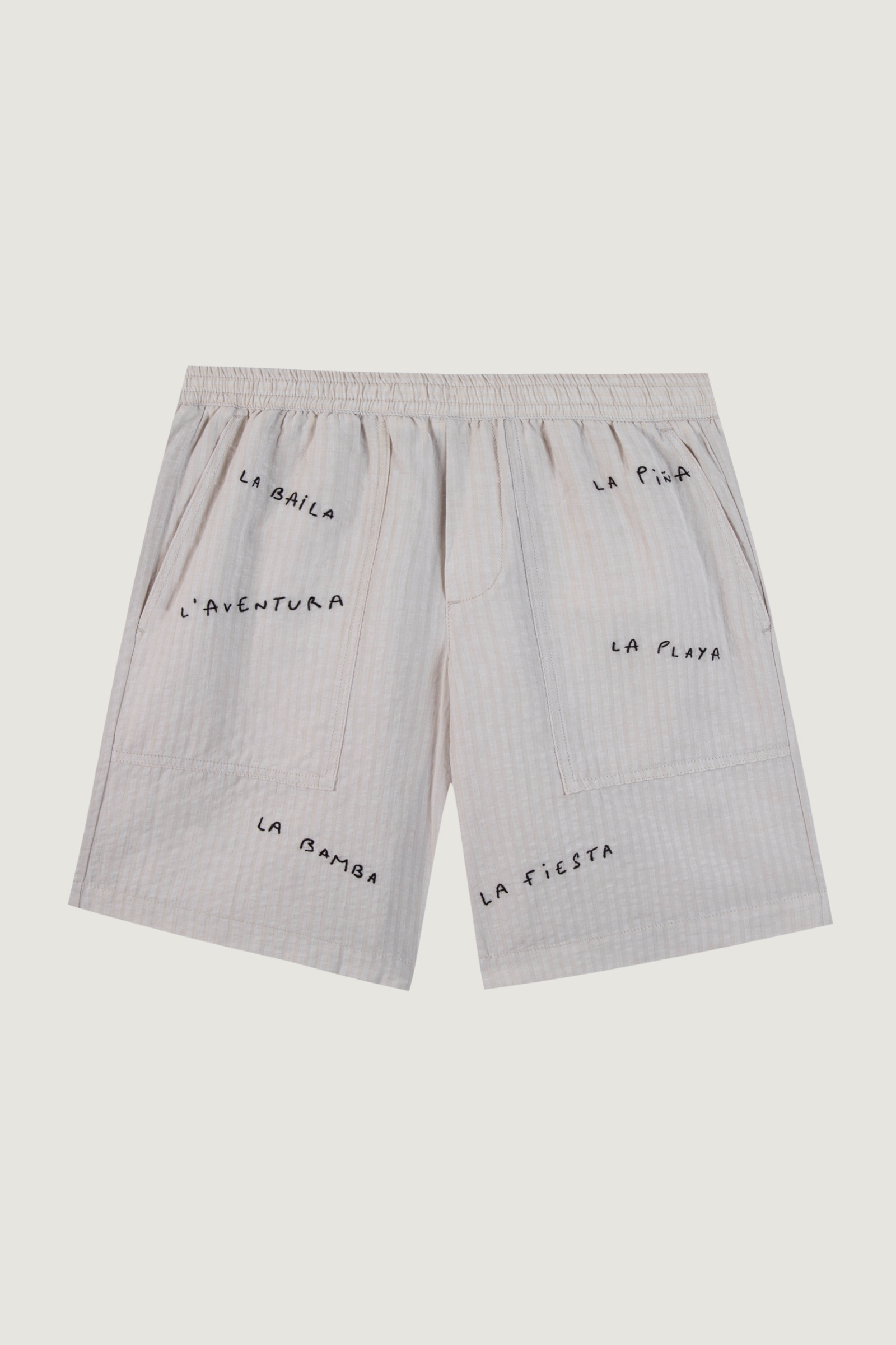 Ils sont dotés de deux grandes poches plaquées à l’avant et de deux plus petites à l’arrière. Sa broderie rend hommage à notre écosystème d’été préféré