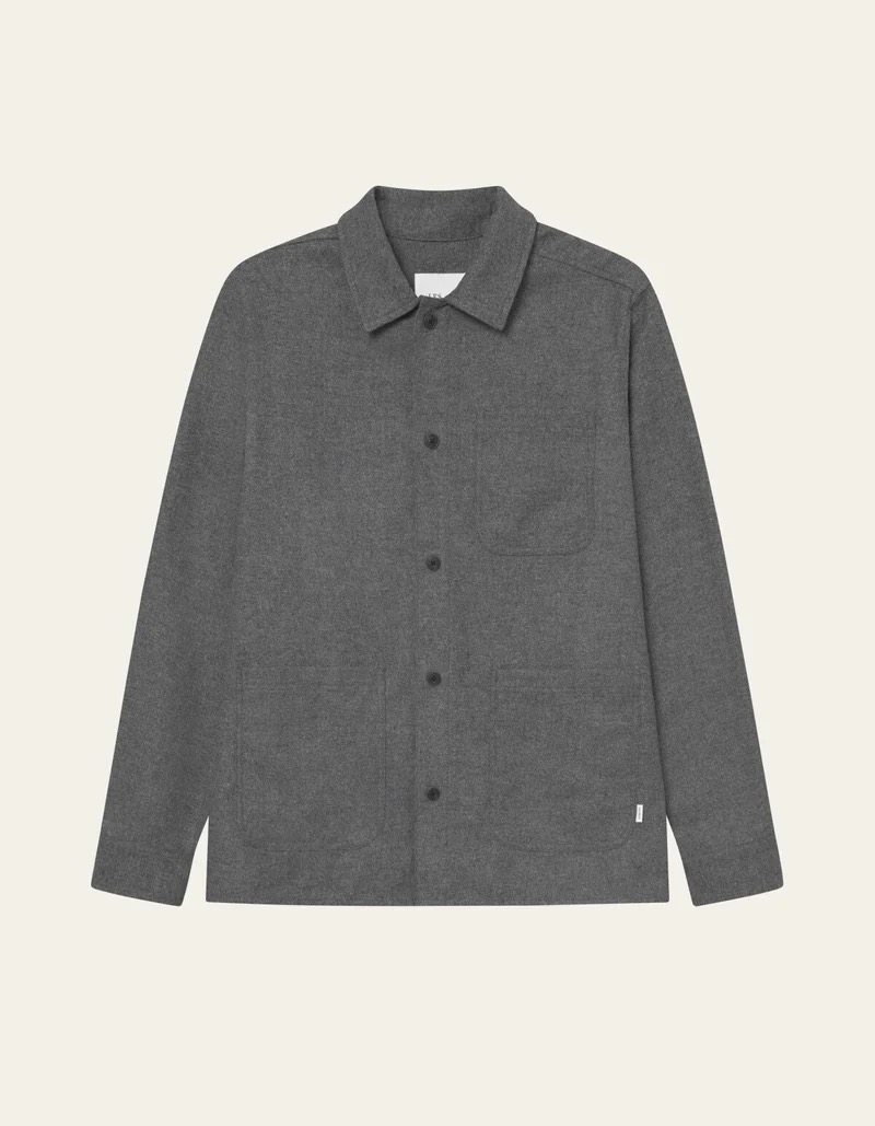Une surchemise classique en mélange de laine moulinée avec une finition subtilement texturée. Elle combine poches plaquées basses, fermeture à boutons et poignets réglables.