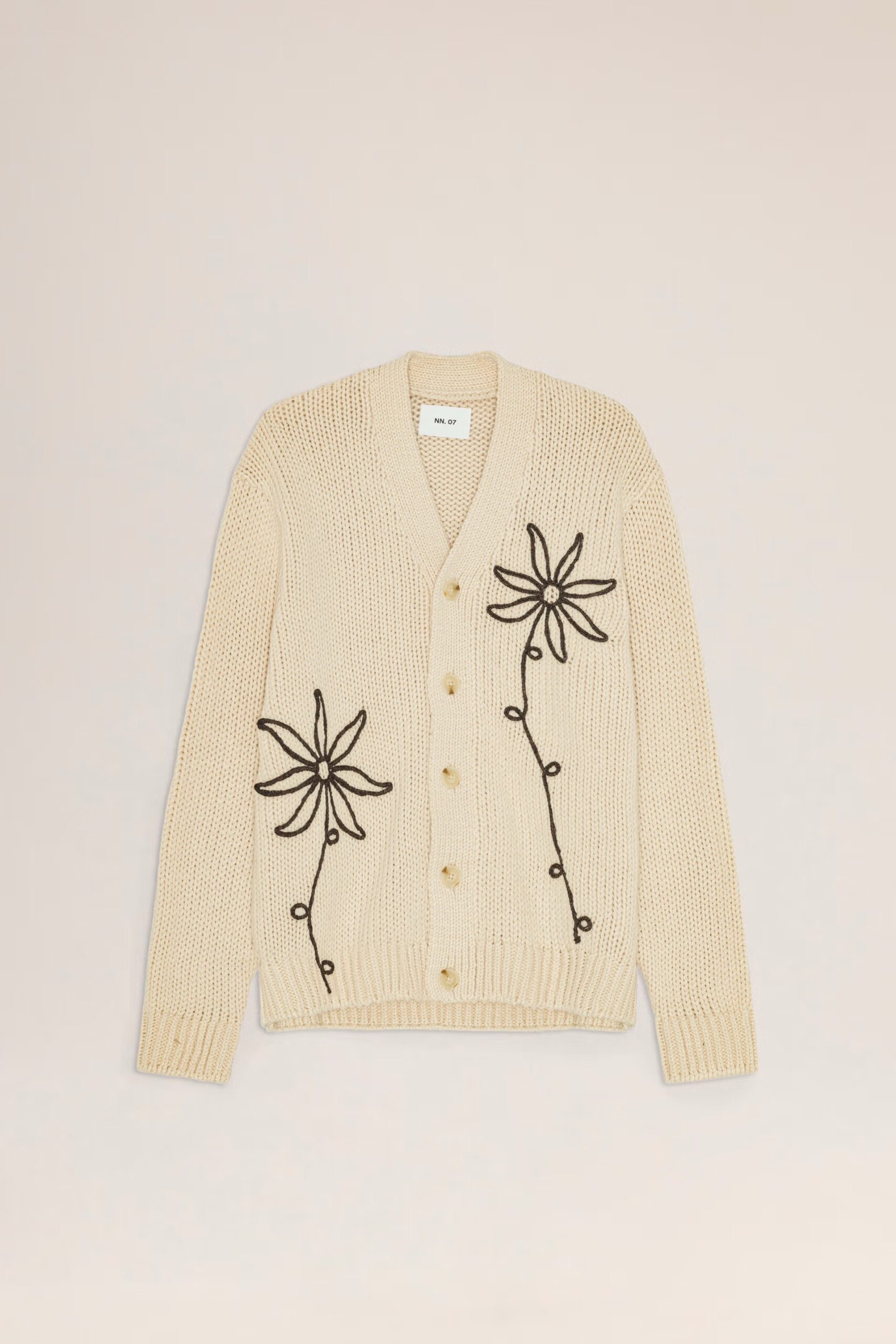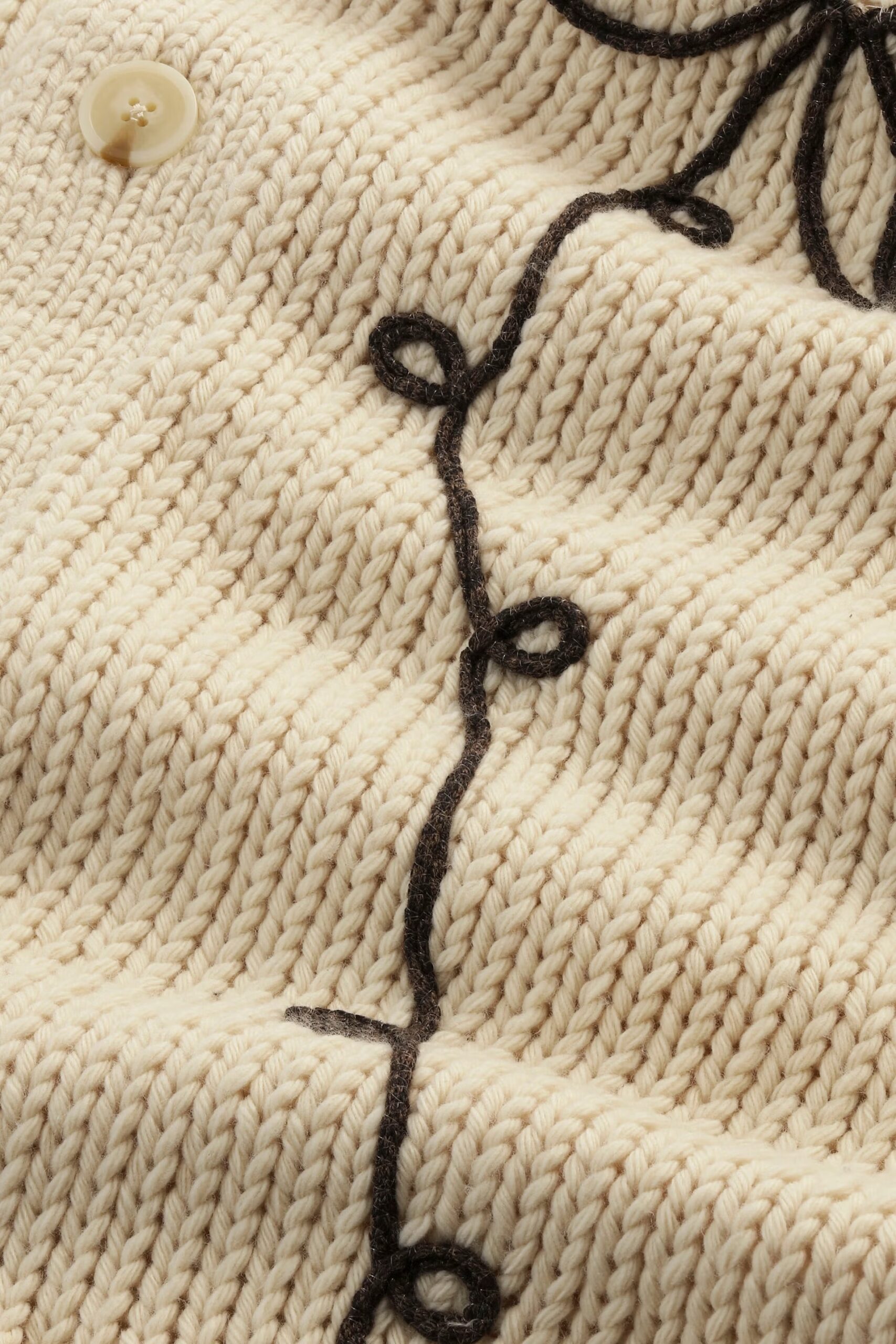 Cardigan coupe régulière fabriqué à partir d’un mélange de polyester recyclé avec une texture pêche douce. Conçu avec des boutons teints assortis et une Å“uvre d’art en intarsie.