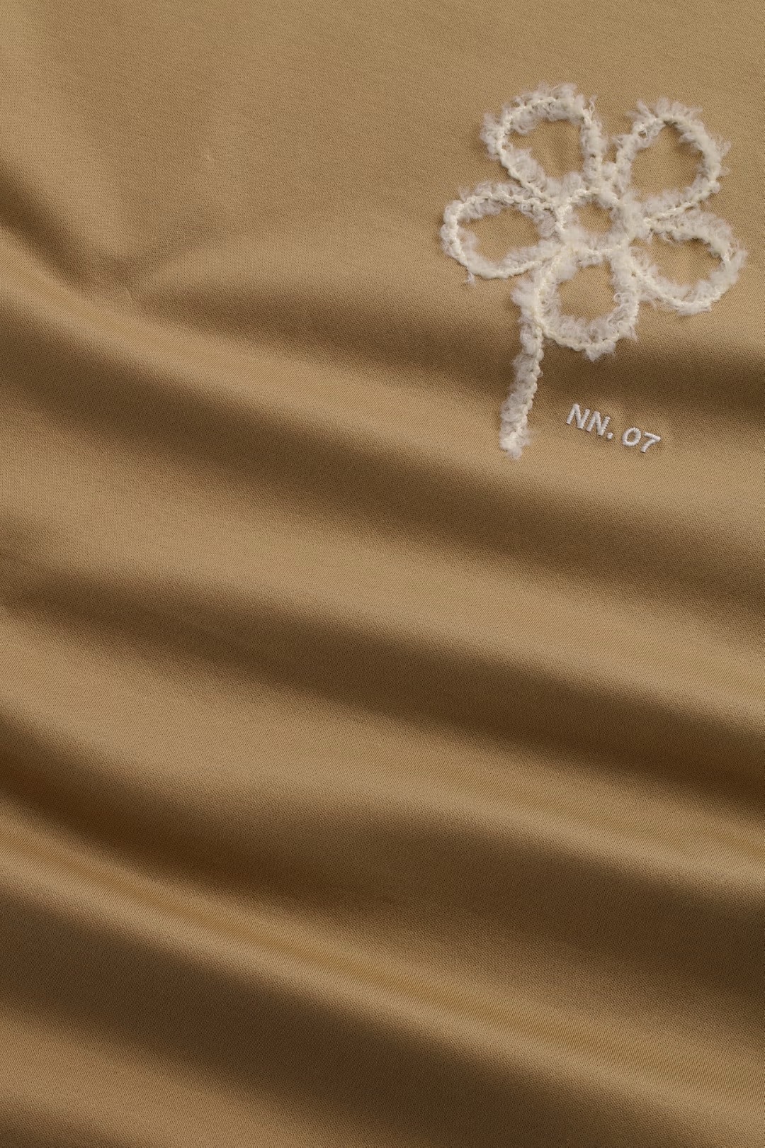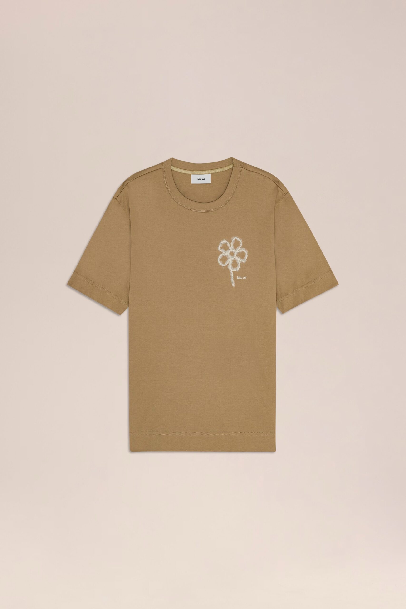 T-shirt décontracté fabriqué dans un interlock en jersey de coton biologique mercerisé avec un large ourlet inférieur et complété par des broderies sur la poitrine