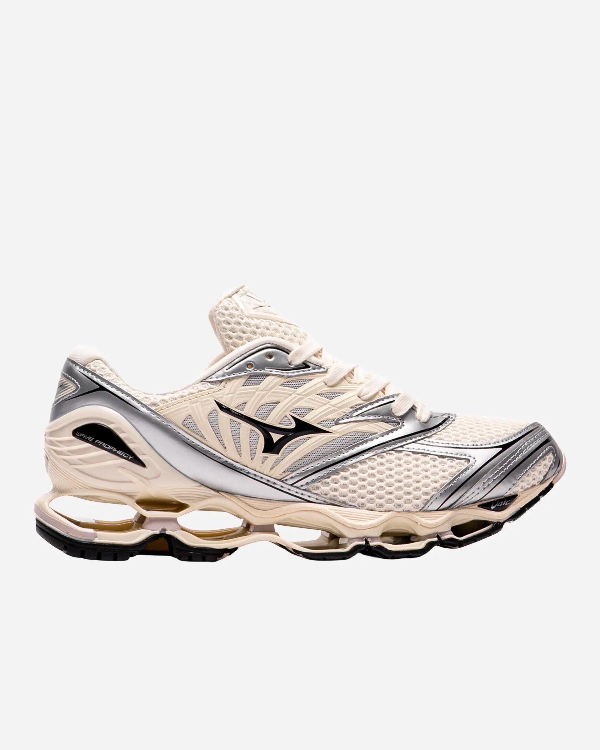 La Mizuno Wave Prophecy est une sneaker technique au look futuriste, conçue à l’origine pour le running. Elle se distingue par sa semelle Infinity Wave à plaques creuses, offrant un amorti très durable, une grande stabilité et un bon retour d’énergie. Sa tige en mesh respirant assure confort et maintien, ce qui en fait une chaussure à la fois performante et adaptée à un usage quotidien, entre sport et lifestyle.